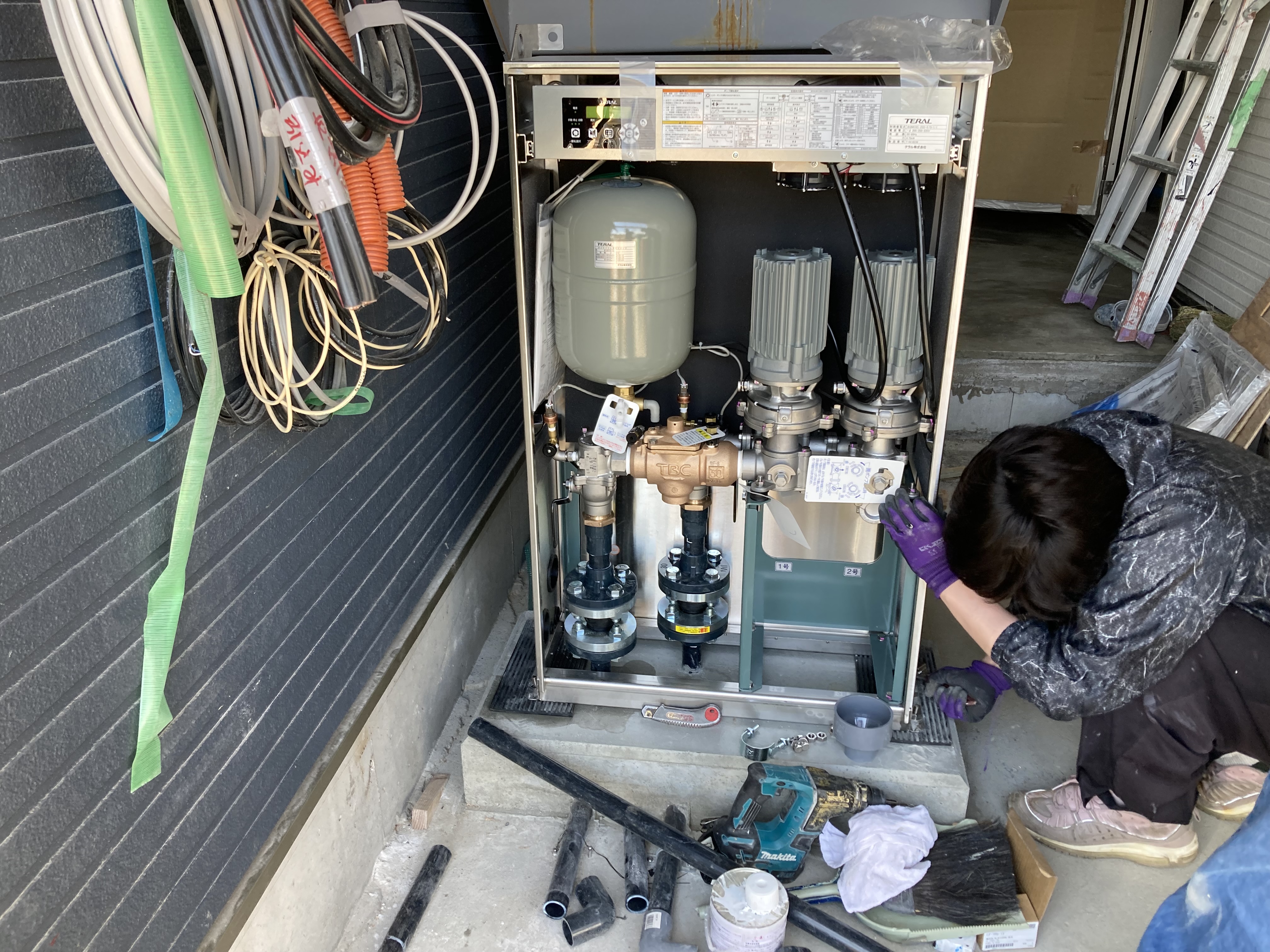| 工事内容 | 住宅敷地内への市水引込及び増圧ポンプ設置工事 |